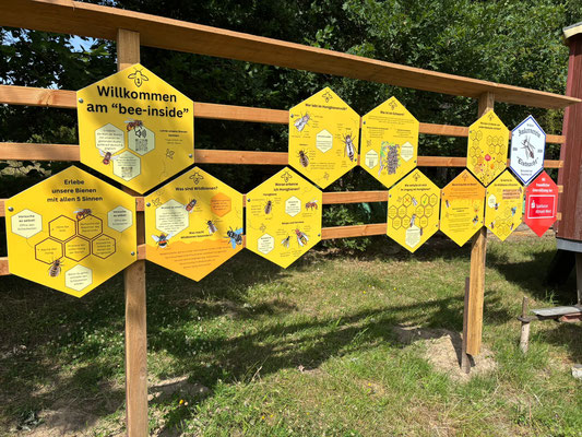 Ganz neu ist seit diesem Jahr die Wand mit den Lerninhalten über Bienen und ihren wilden Verwandten. Sie ist im Rahmen der Masterarbeit von Lisa-Marie Schröder entstanden. Der Sparkasse Altmark-West gilt der Dank für die finanzielle Unterstützung des Projekts in Diesdorf.